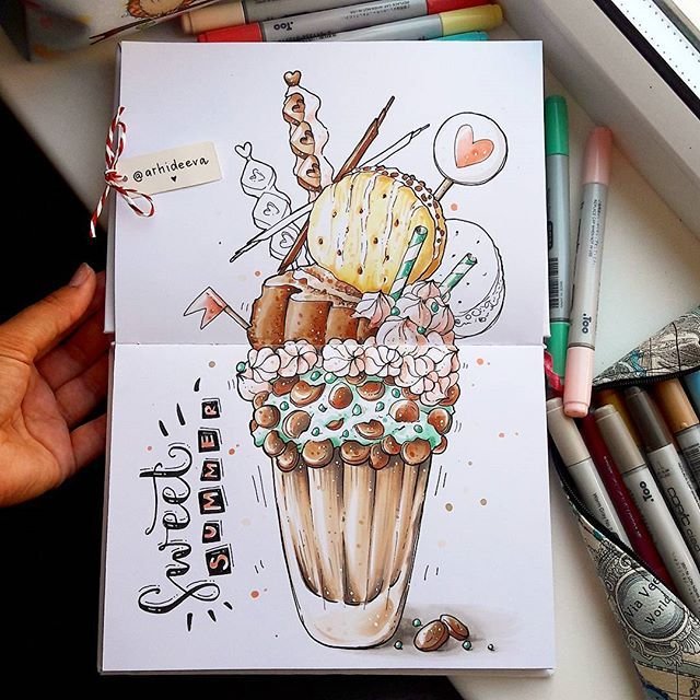 Мороженое маркерами в в скетчбук