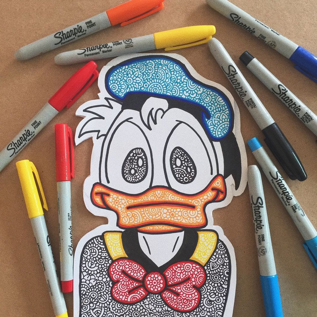 ![Персонажи Дисней маркерами]()