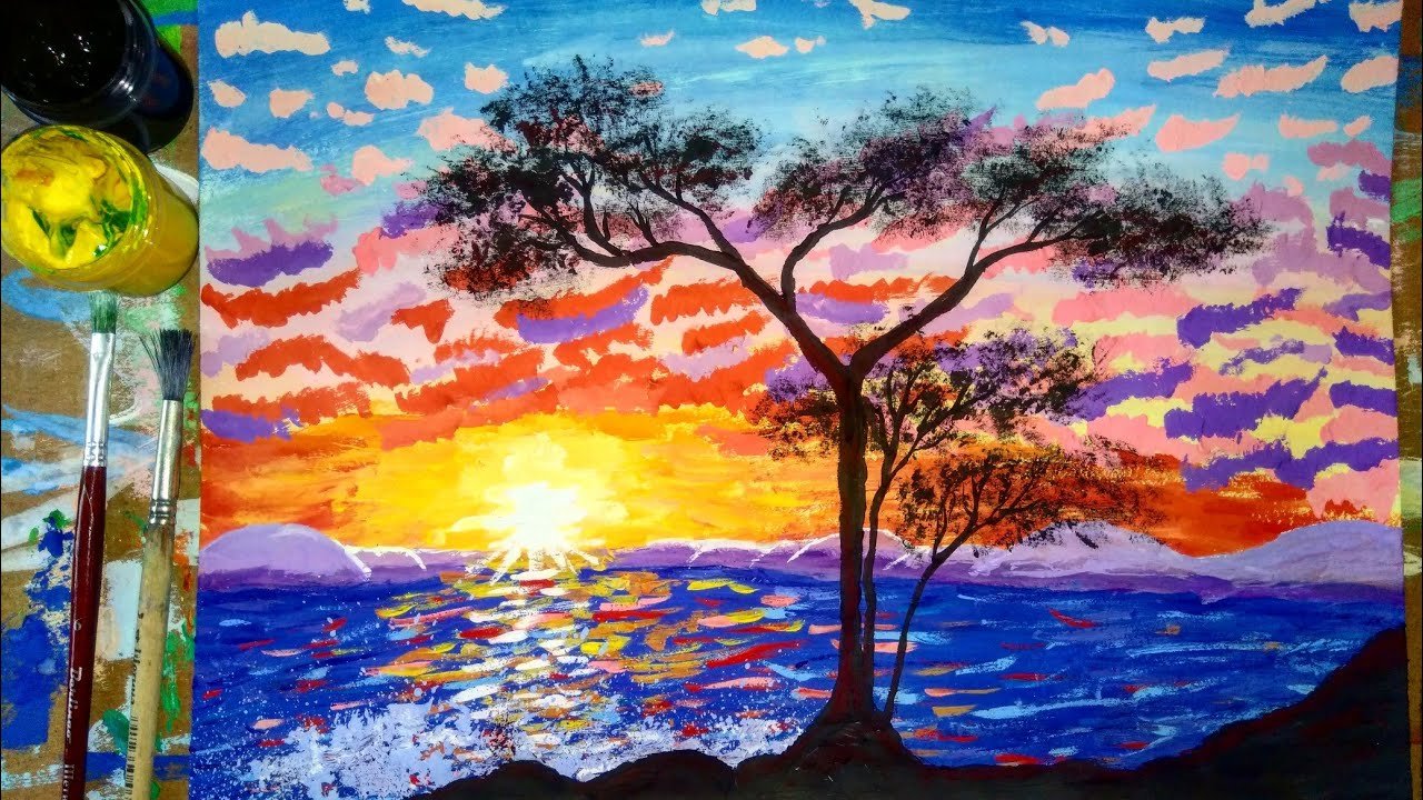 Рисование заката для детей