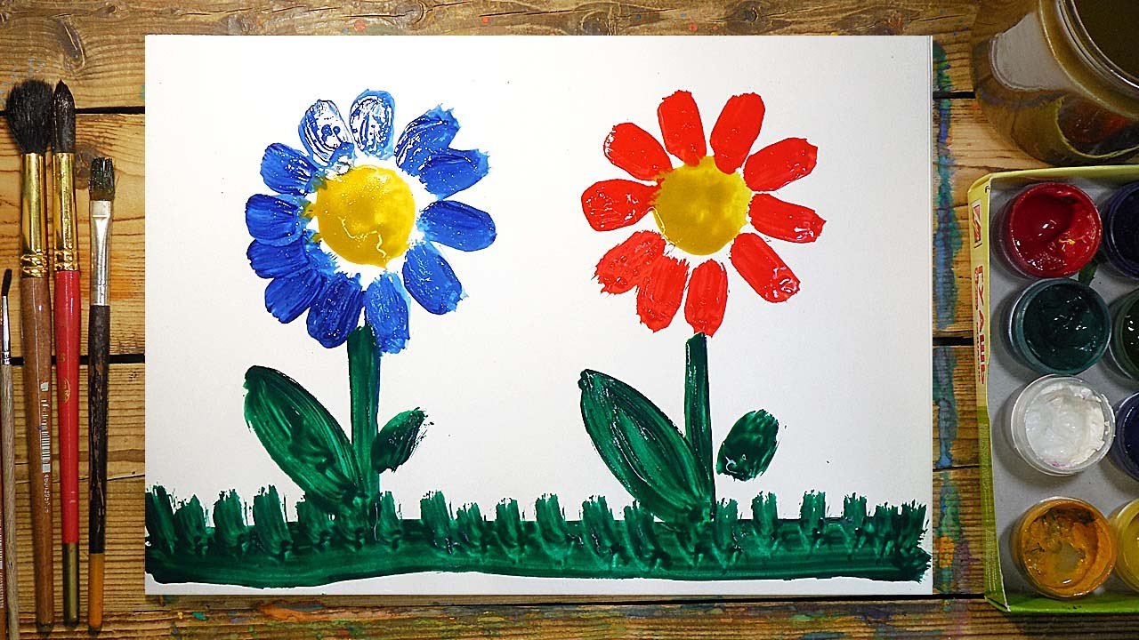 Цветы красками для детей