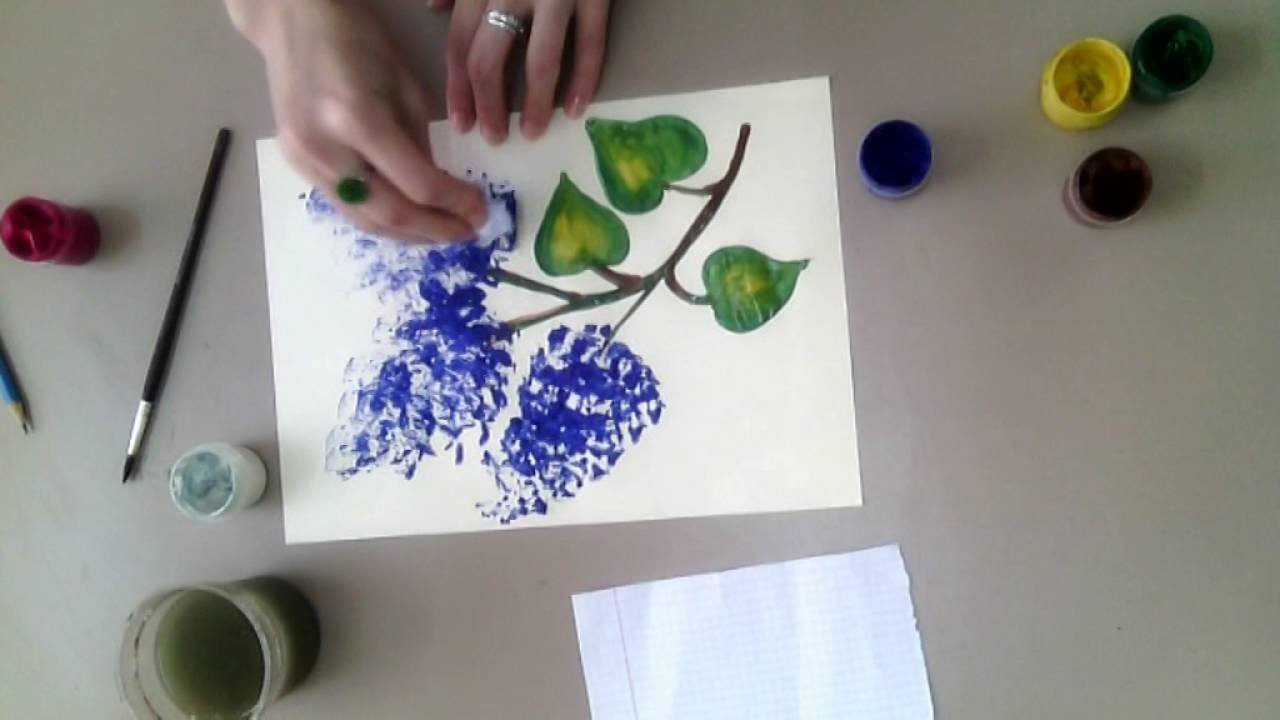 Сирень красками для детей