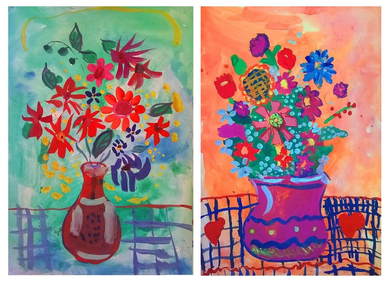 Цветы в технике правополушарного рисования для детей