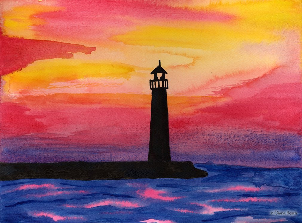![Закат гуашью]()