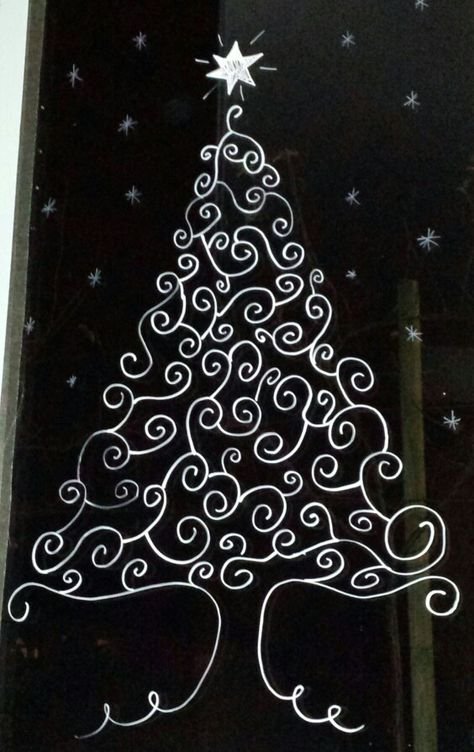 ![Рисование на окнах елка]()