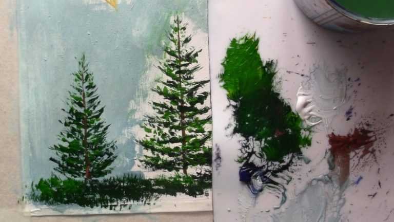 Елка на стекле гуашью