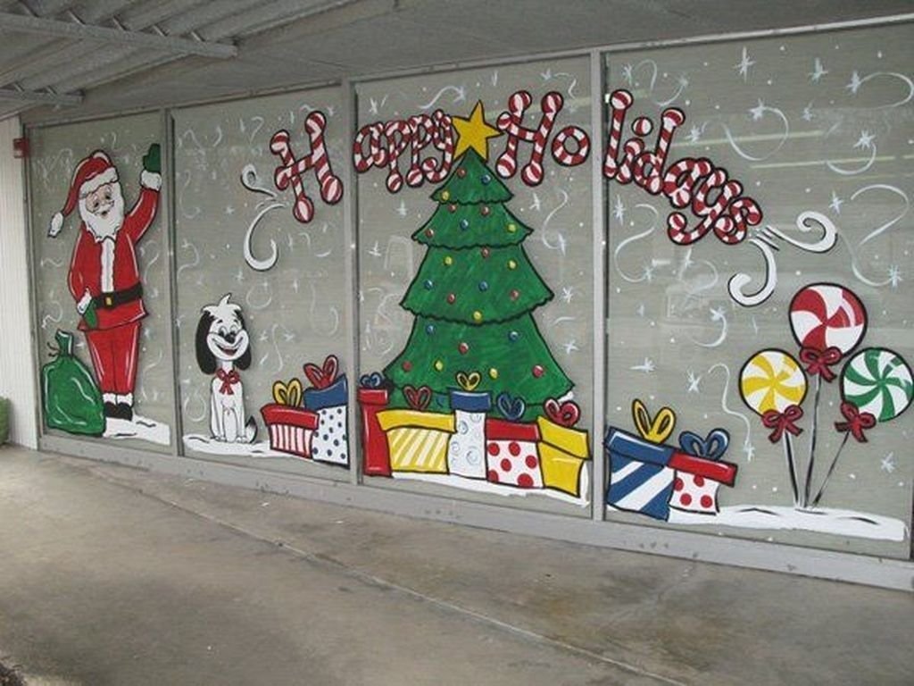 Украшение окон к новому году красками