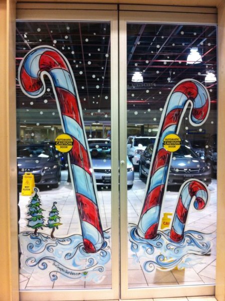 ![Новогодняя роспись окон]()