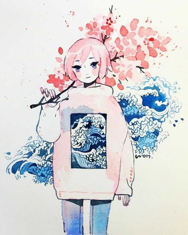 ![Рисунки акварелью аниме]()