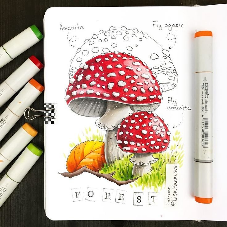 ![Грибы маркерами]()