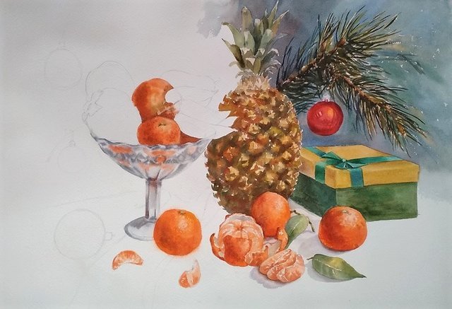 ![Новогодний натюрморт акварелью]()