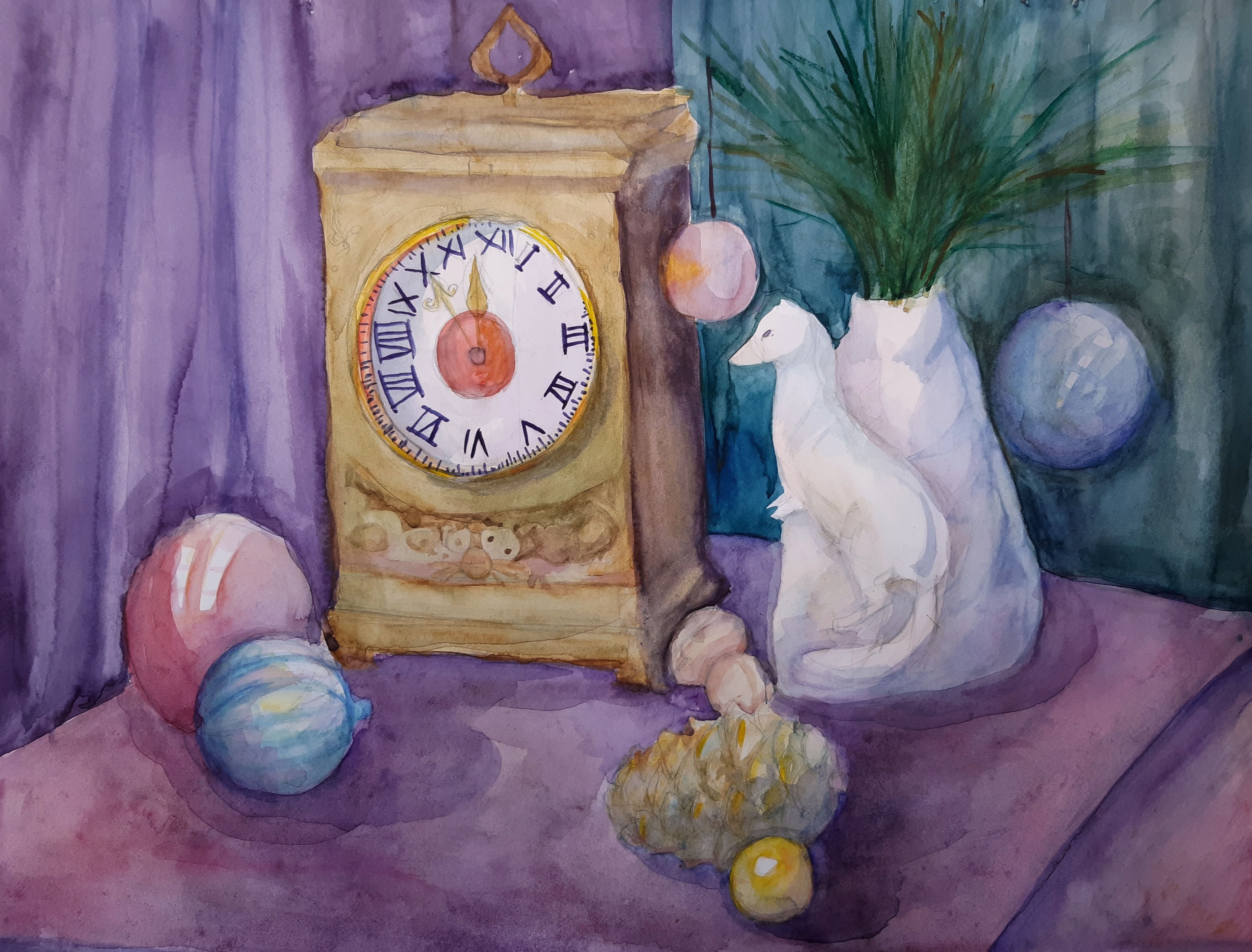 Новогодний натюрморт акварелью