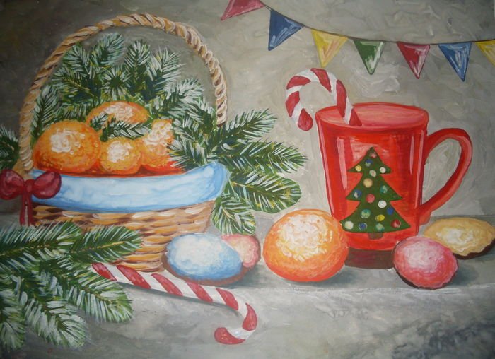 ![Новогодний натюрморт живопись]()
