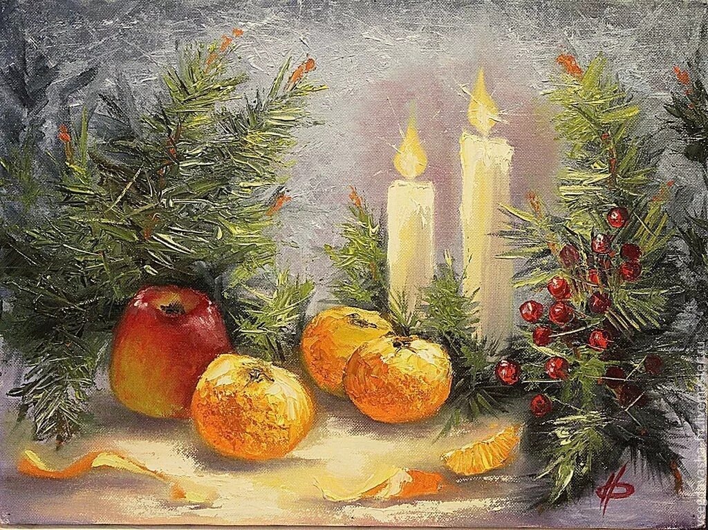 Новогодний натюрморт живопись