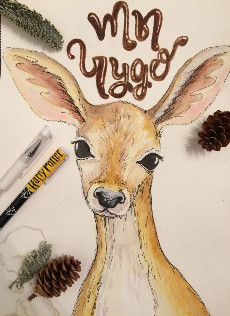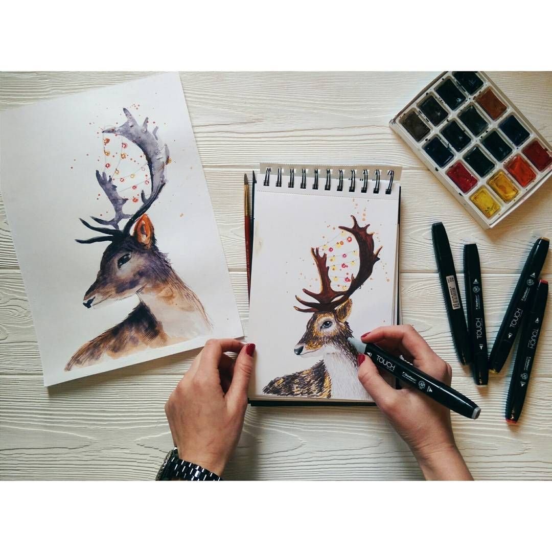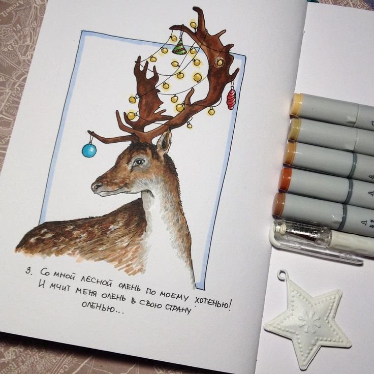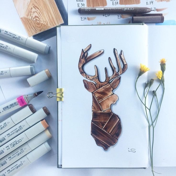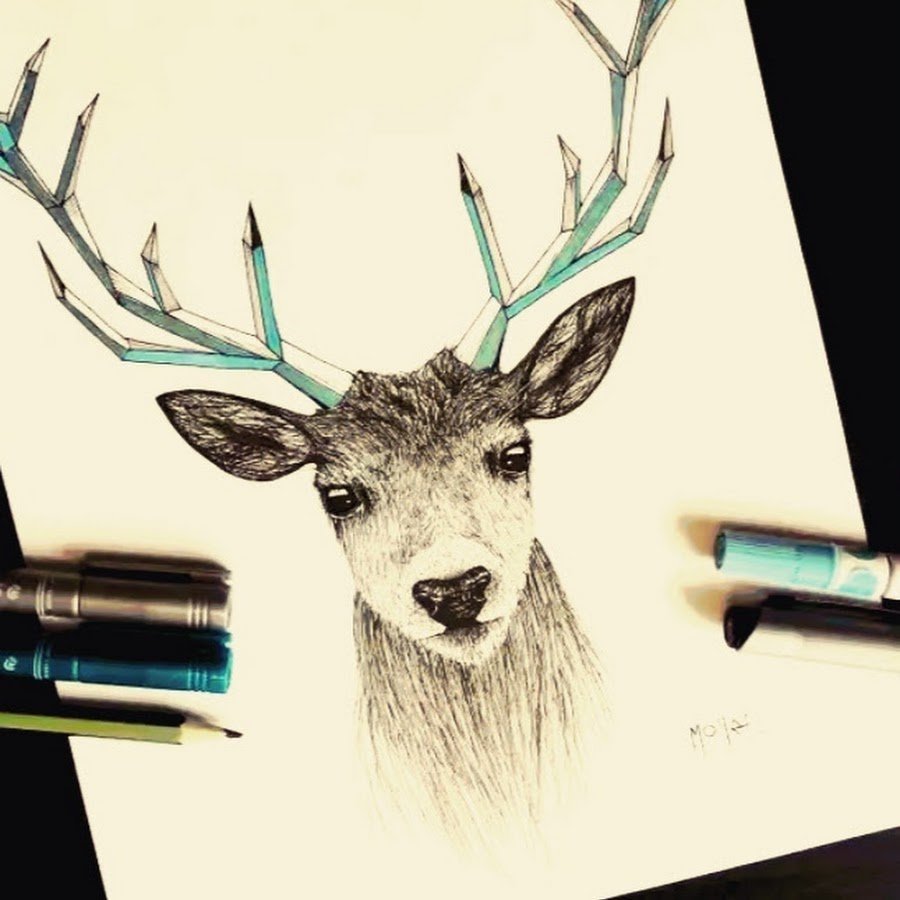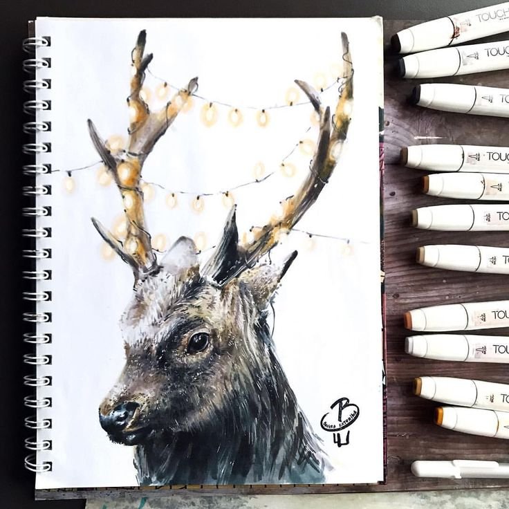 ![Олень скетч маркерами]()