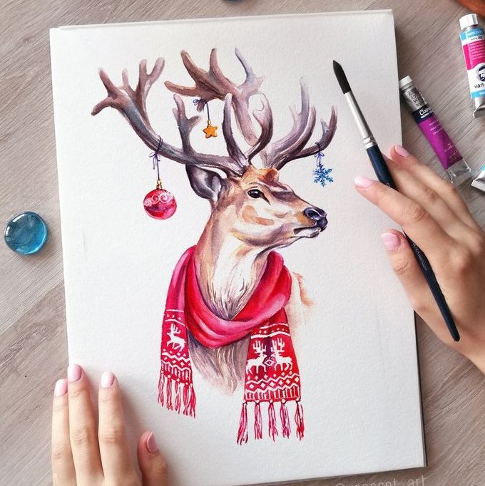 ![Эскиз олень акварель]()