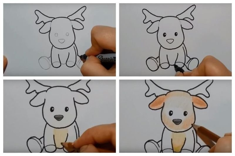 Рисование олененка пошагово