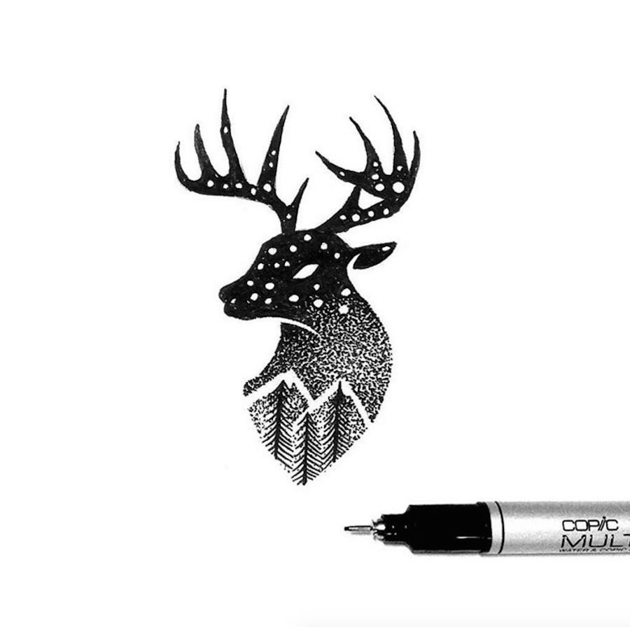 Олень черной ручкой
