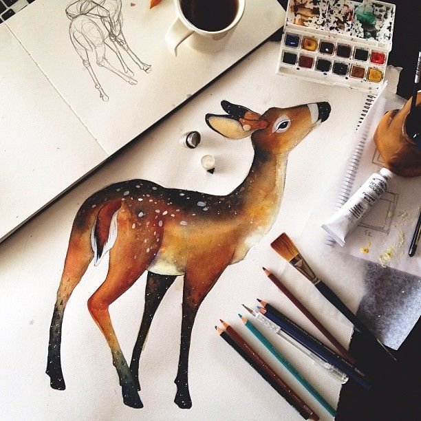 ![Скетчинг акварелью олень]()