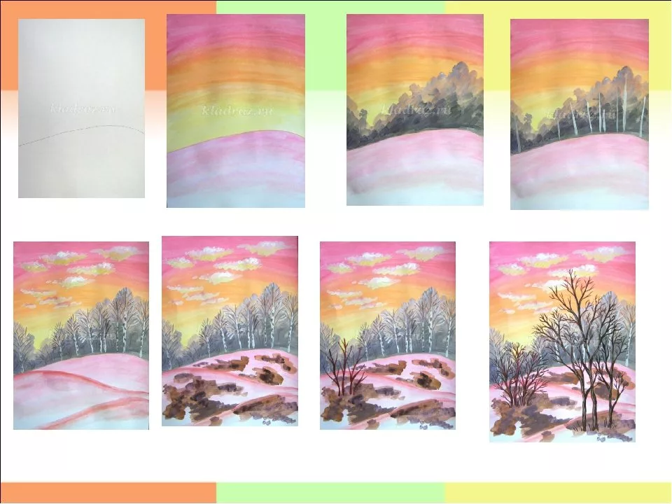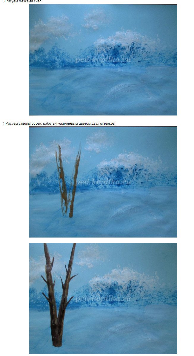 Рисование зимнего пейзажа мастер класс