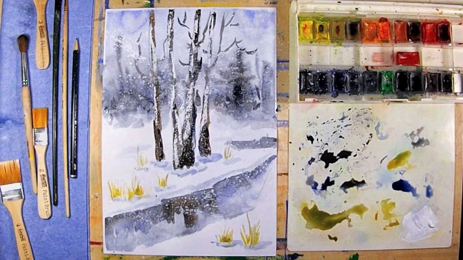 Уроки рисования акварелью зимний пейзаж
