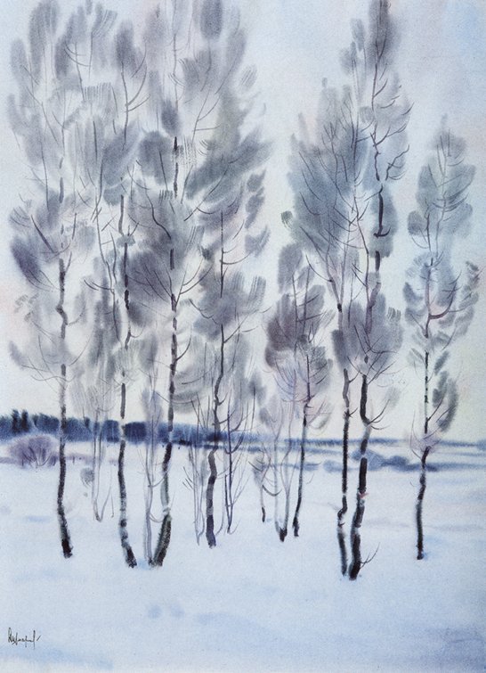 ![Легкий зимний пейзаж акварелью]()