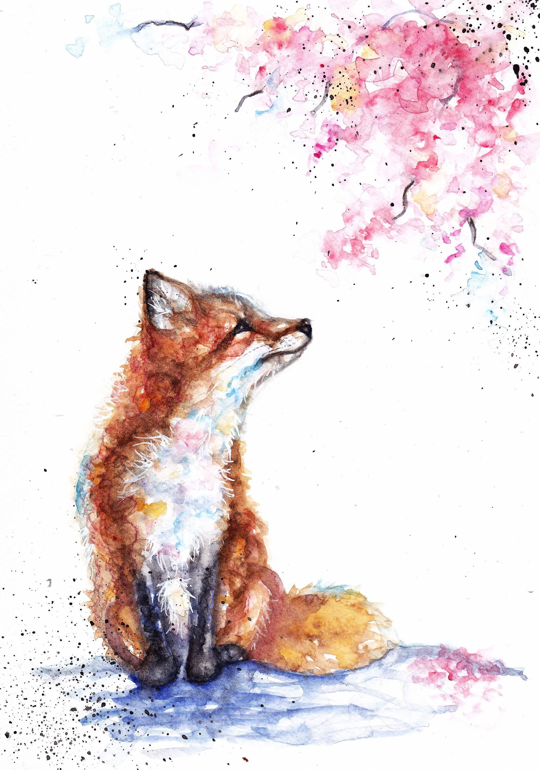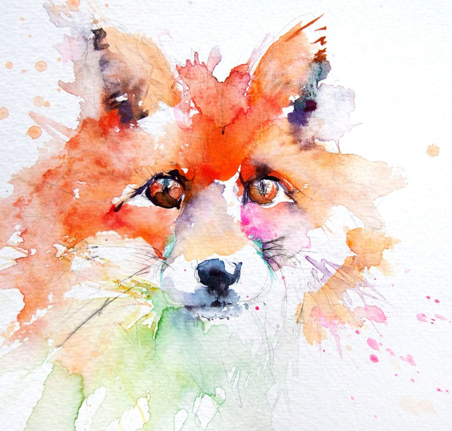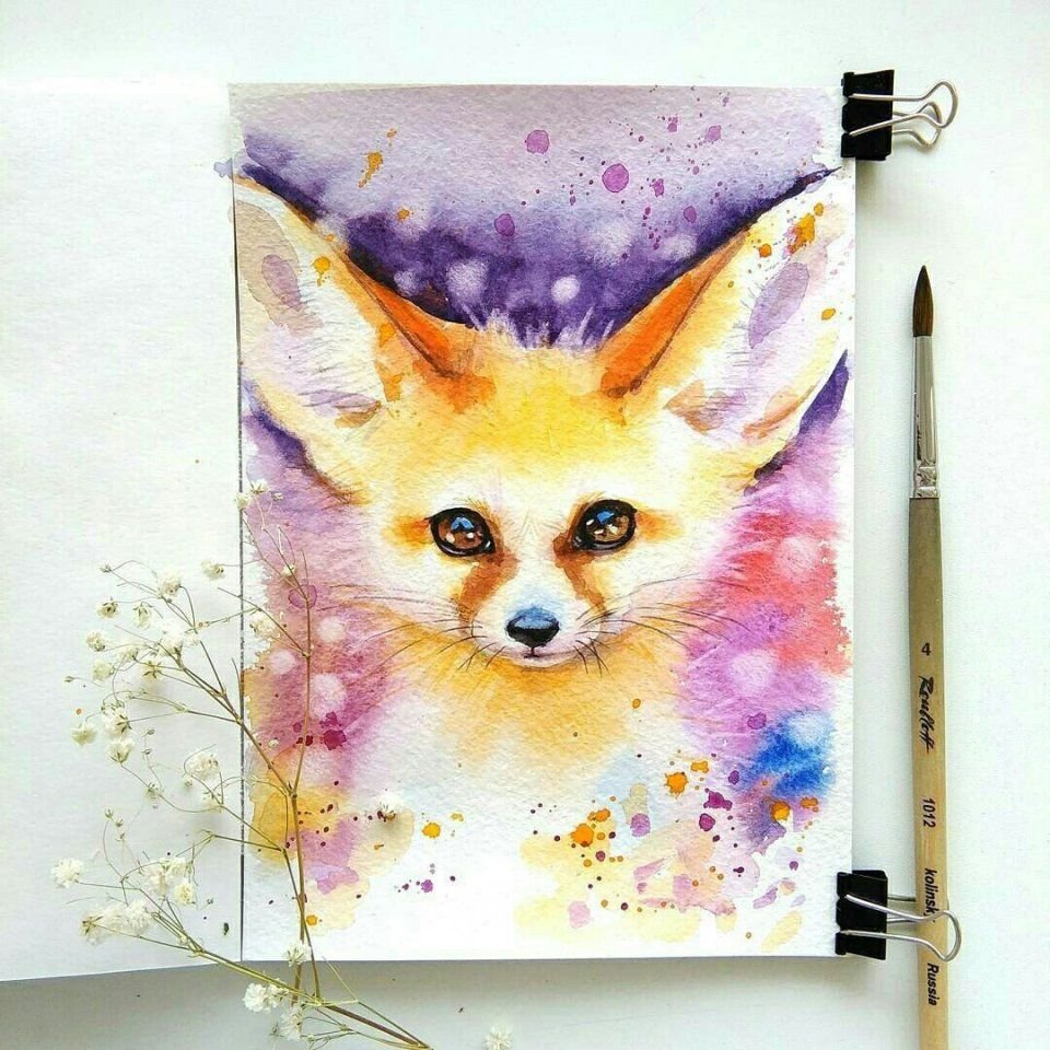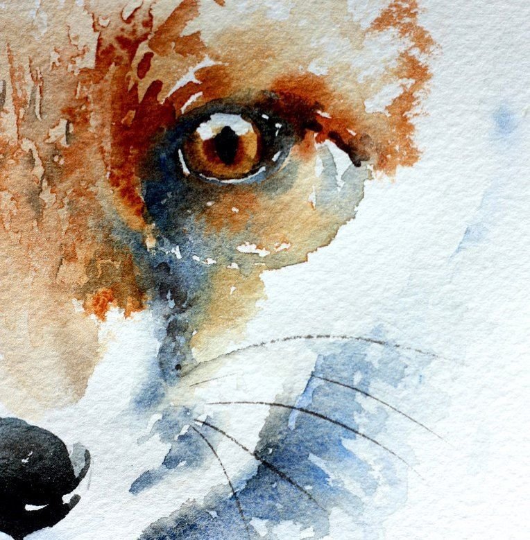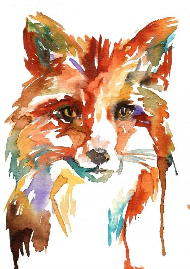 ![Морда лисы акварелью]()