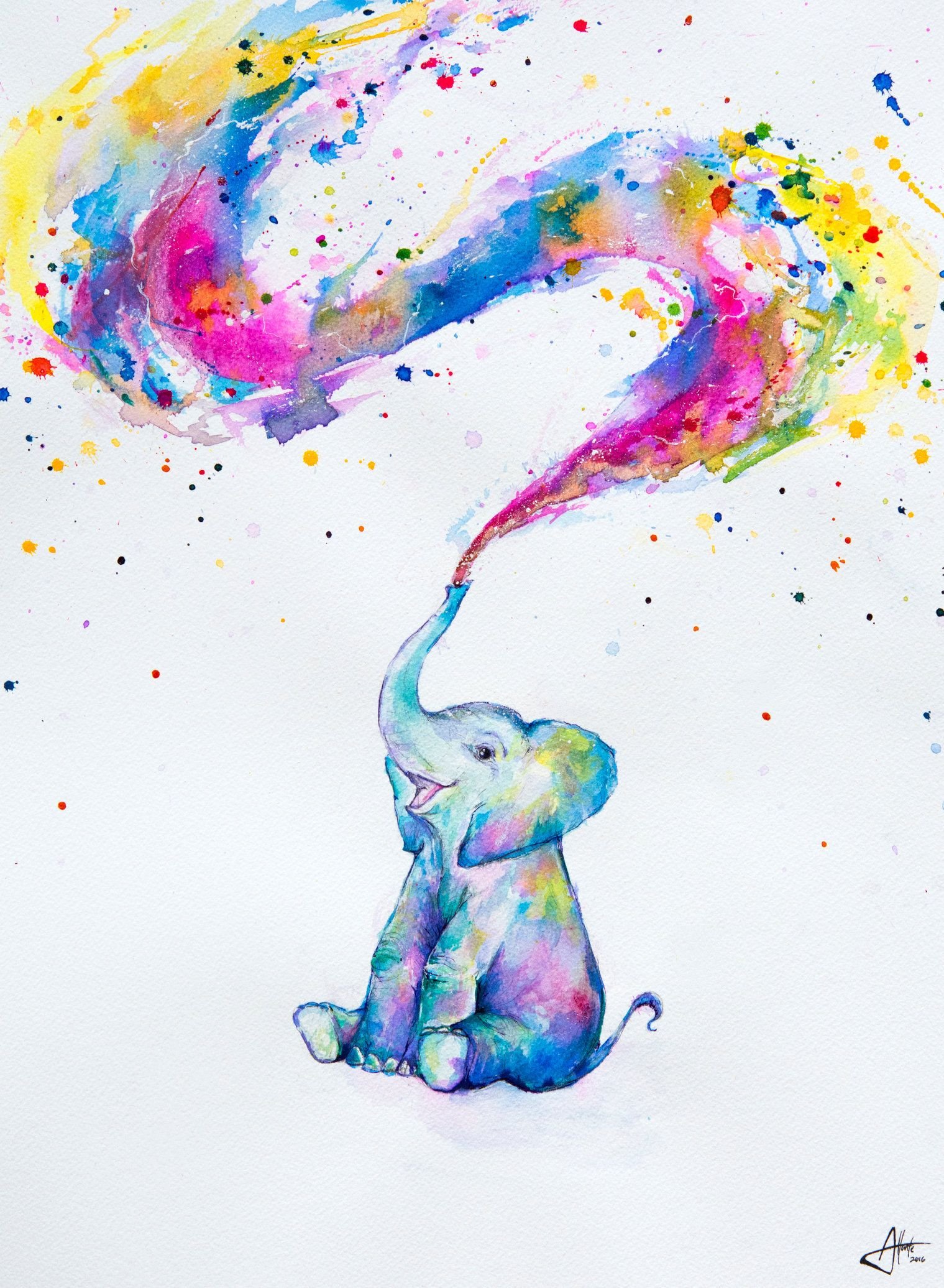 ![Слон гуашью]()