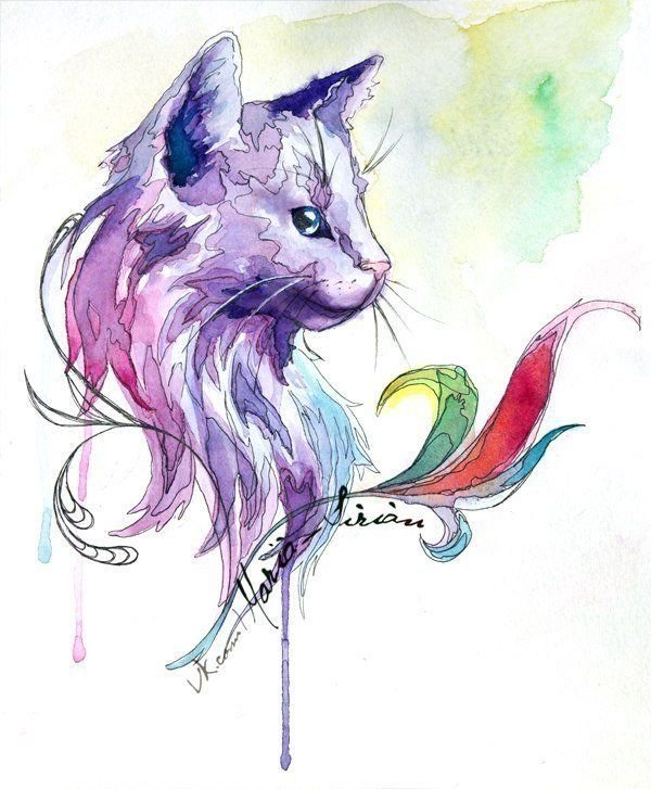![Акварельная кошка тату]()