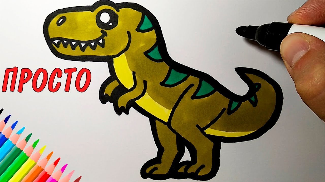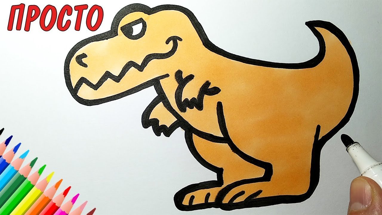![Тираннозавр лёгкий рисунок фломастерами]()