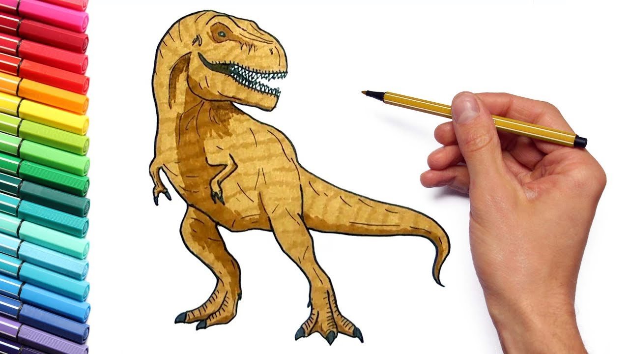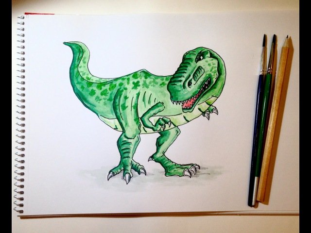 Тираннозавр лёгкий рисунок фломастерами