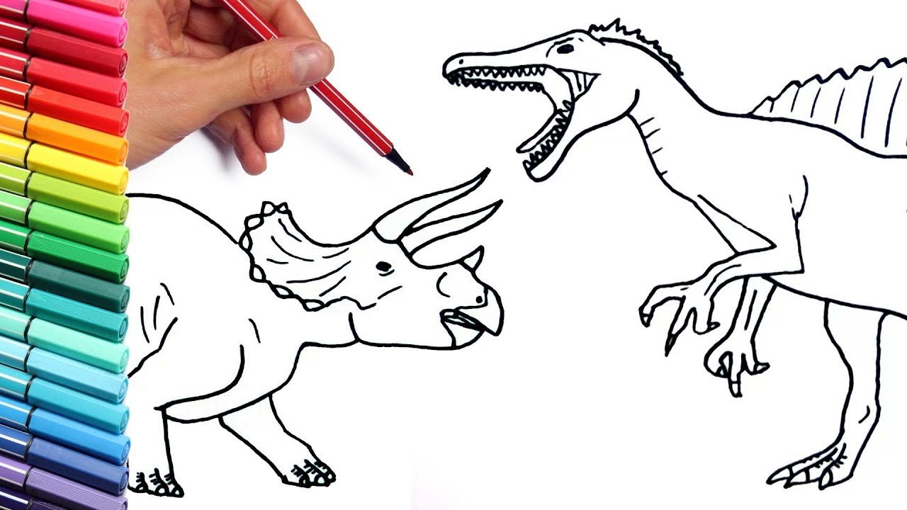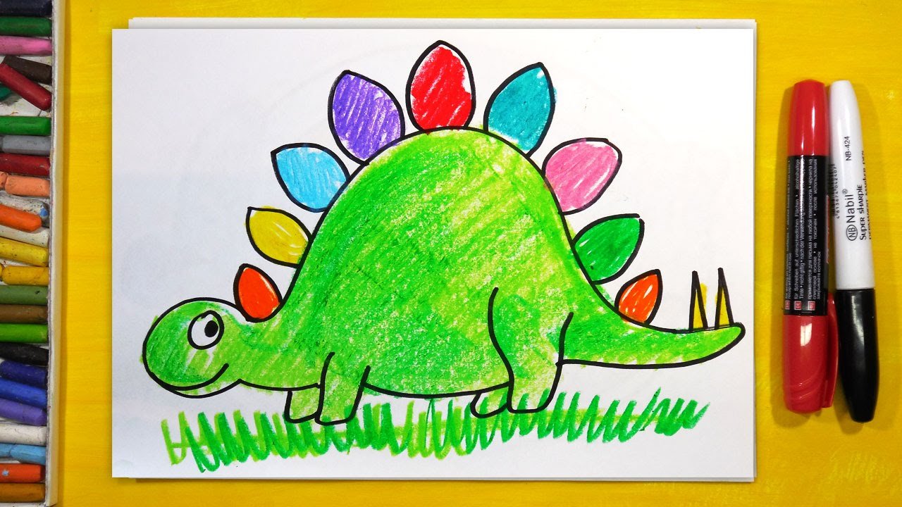 ![Динозавры цветными карандашами]()