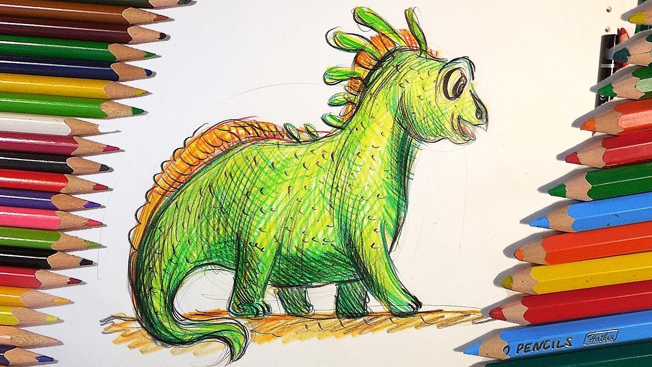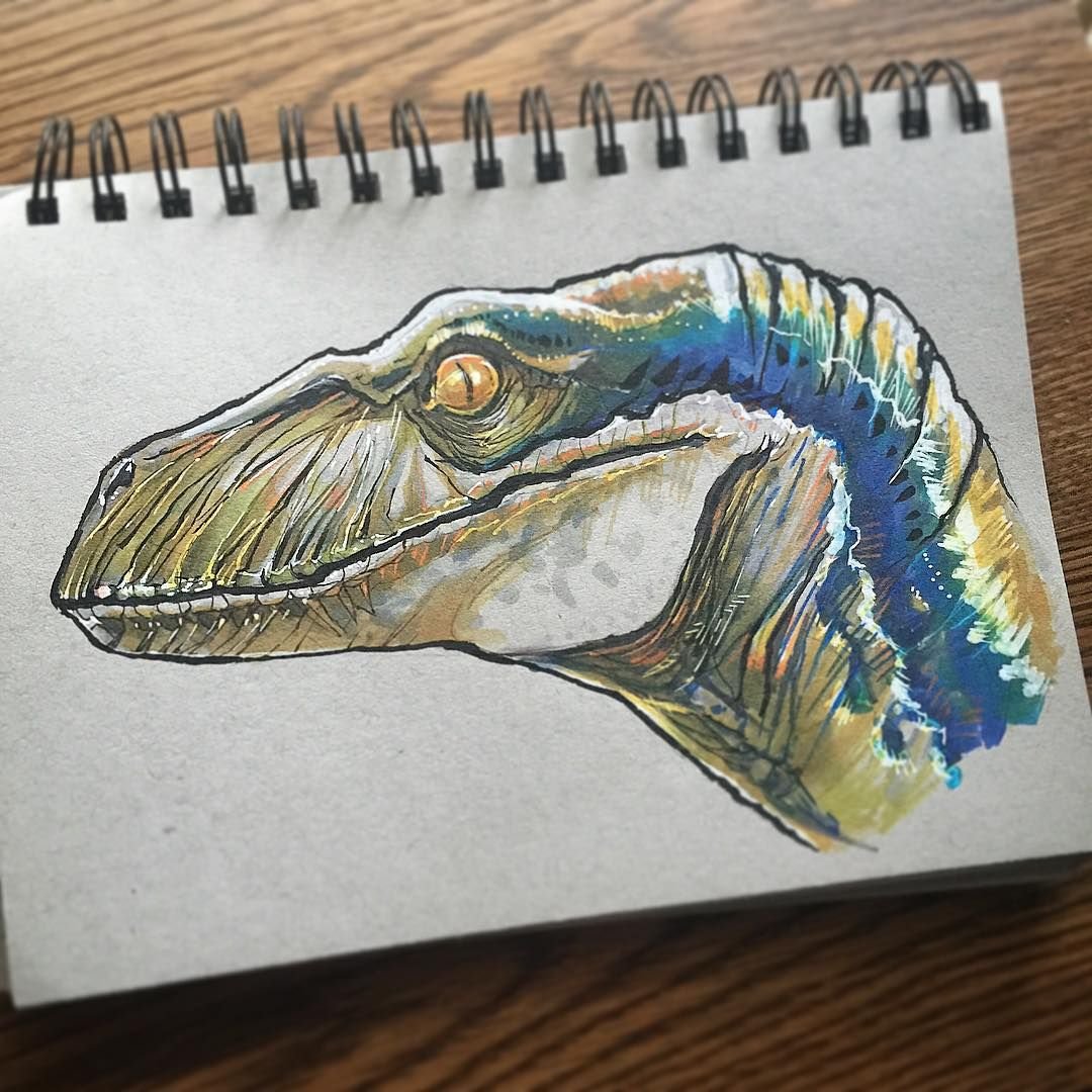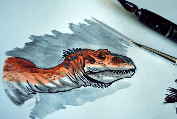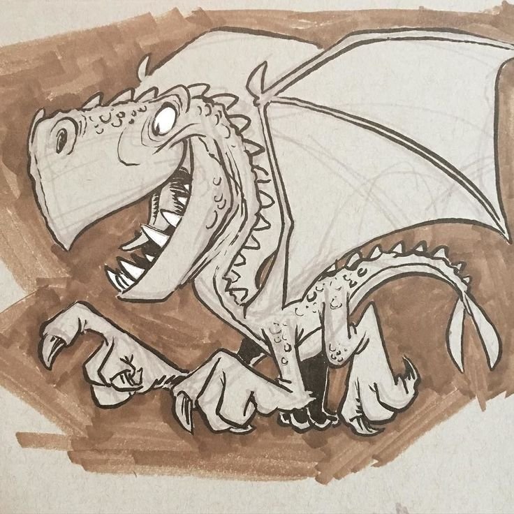 ![Динозавр скетч маркерами]()