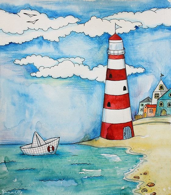 ![Маяк цветными карандашами]()