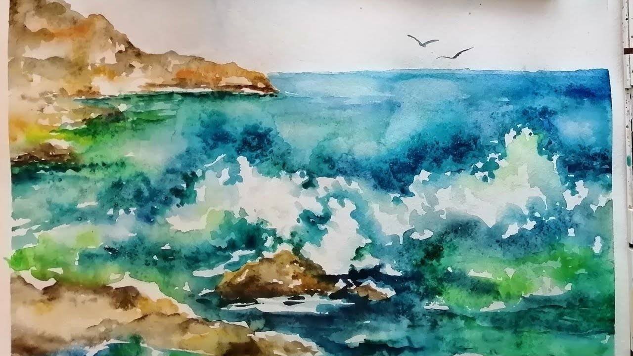 Рисование моря в акварели