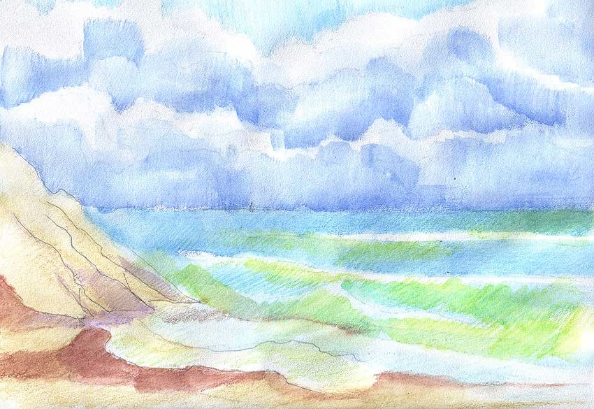 Побережье акварелью