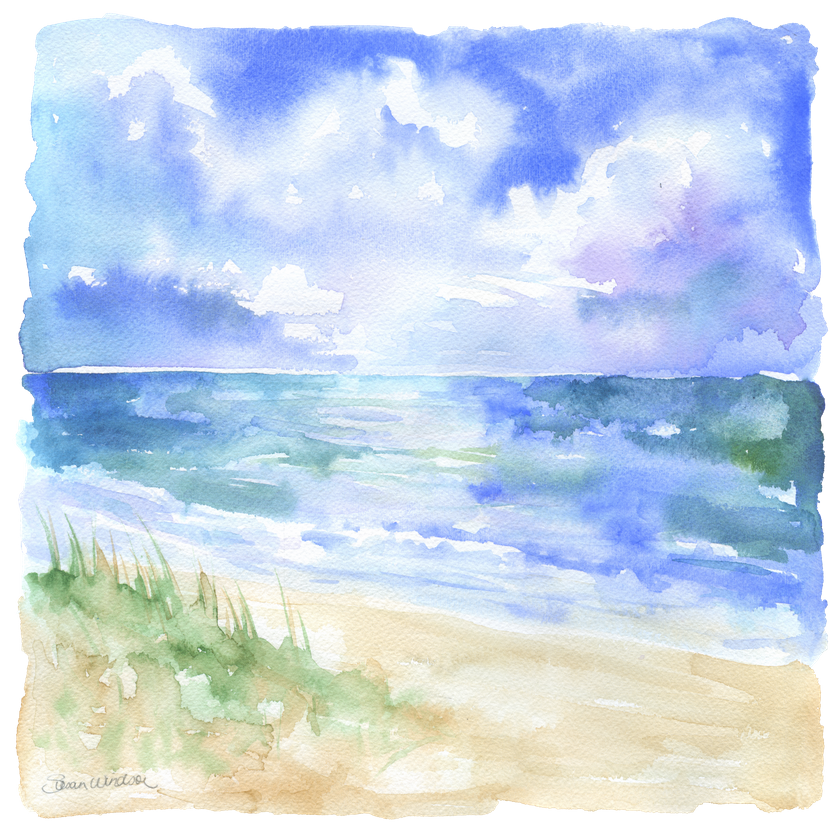 Море пляж акварель