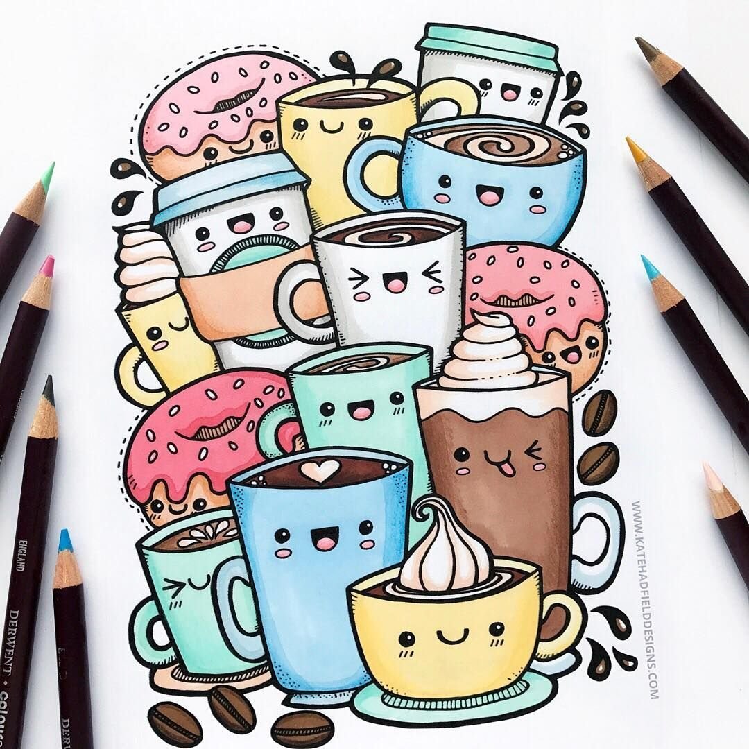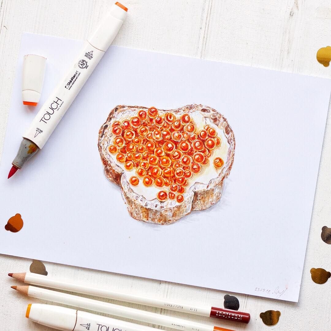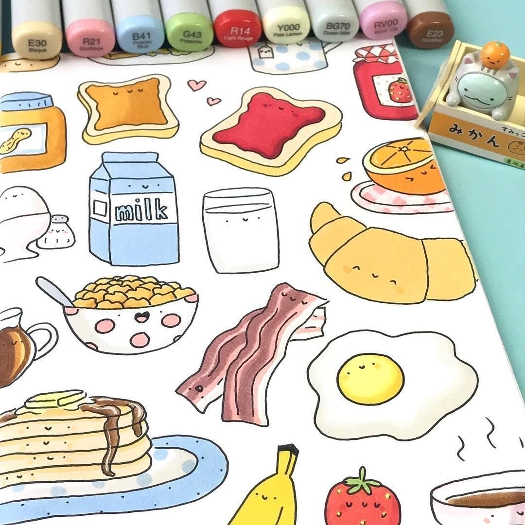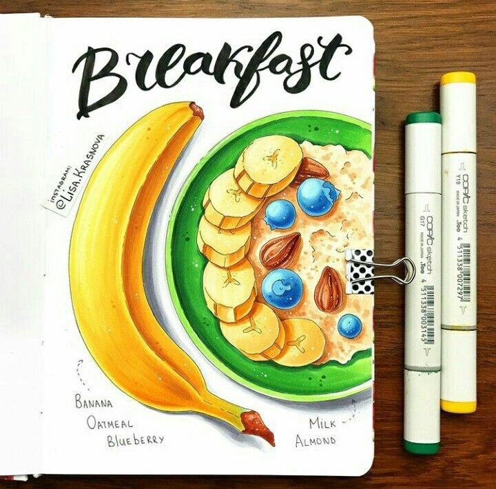 Рисунки для срисовки в скетчбук лёгкие маркерами еда