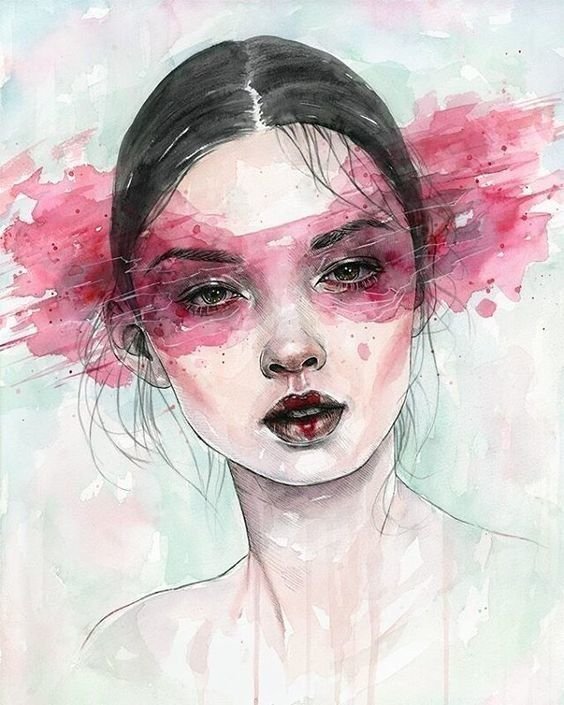 ![Лицо девушки акварелью]()