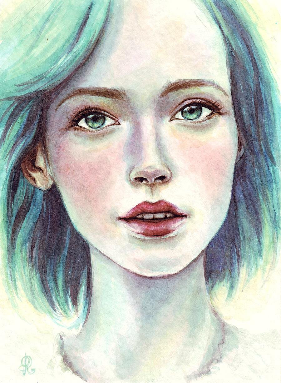 Лицо девушки акварелью