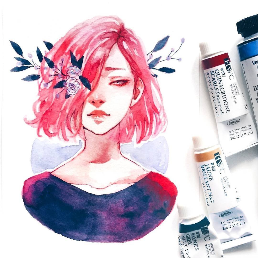 ![Девушка арт акварель]()