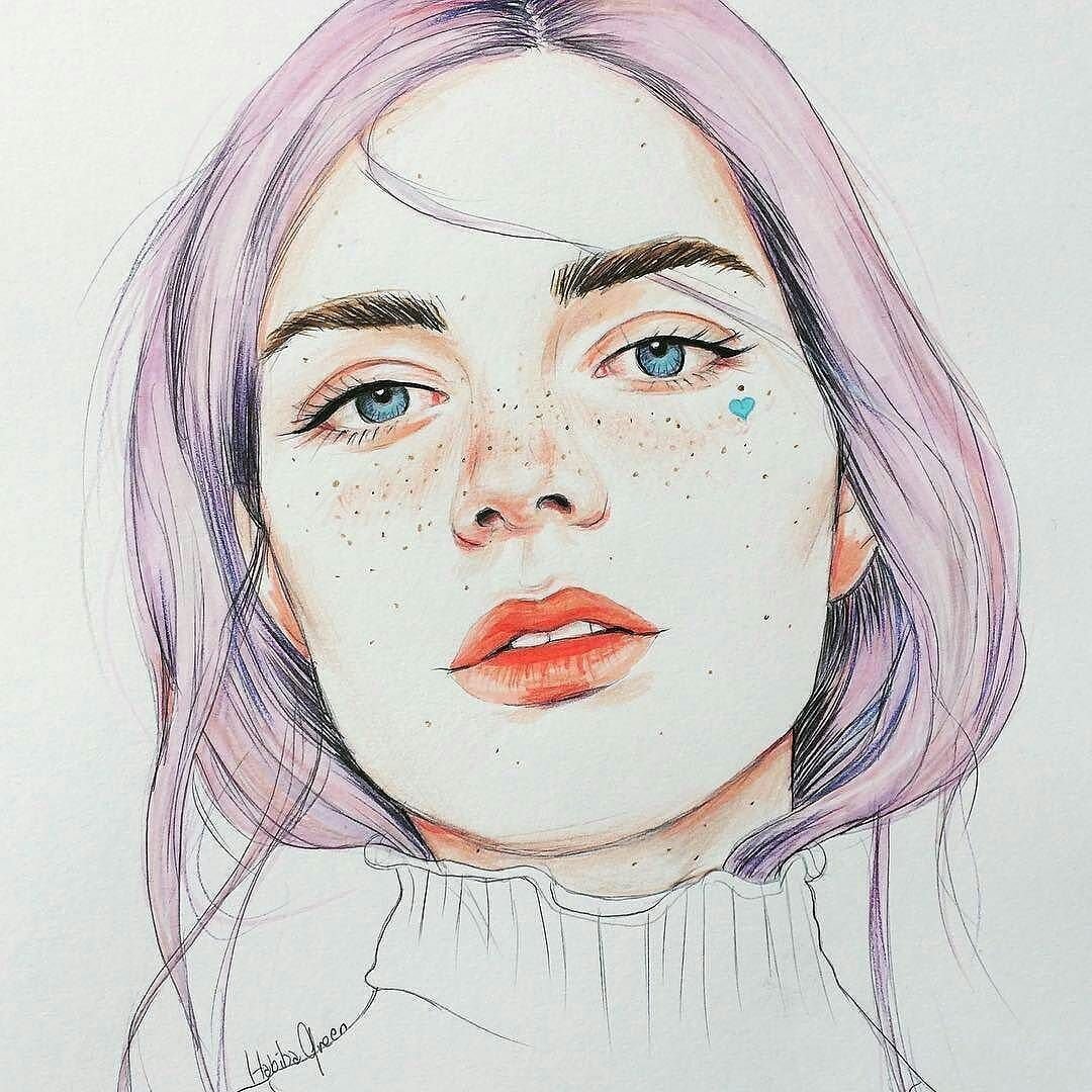 ![Лицо девушки рисунок]()