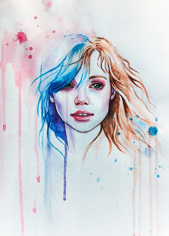![Девушка нарисованная акварелью]()