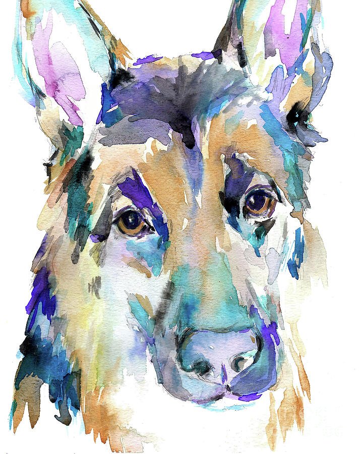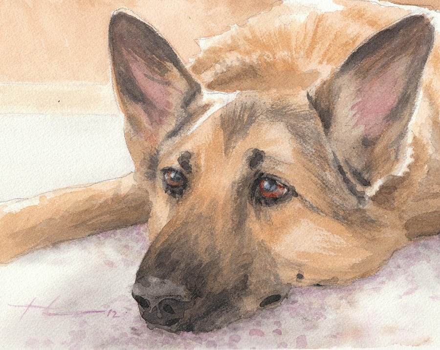 ![Немецкая овчарка акварелью]()