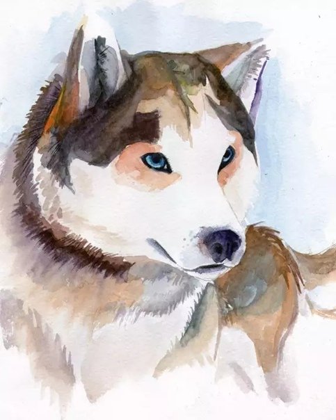 ![Хаски акварелью]()