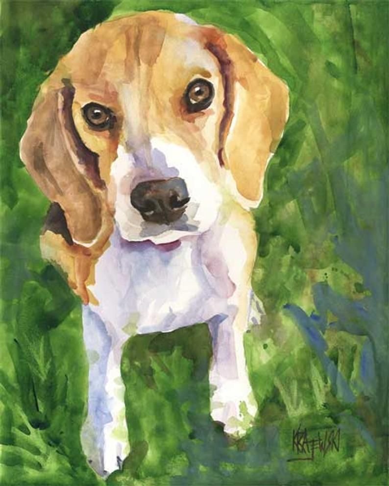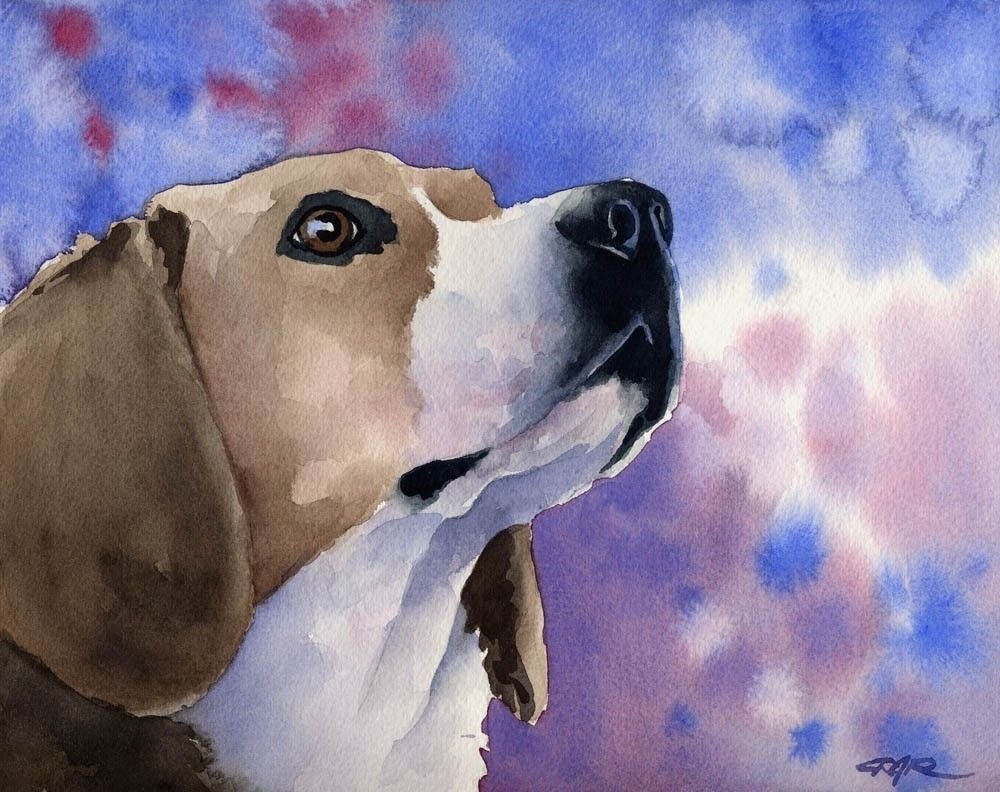 Собака акварелью Бигль