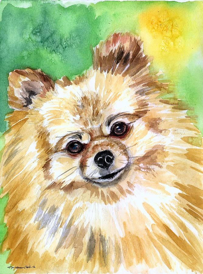 ![Померанский шпиц акварелью]()