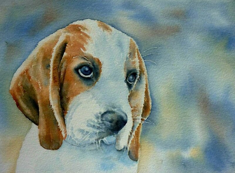 ![Собака акварелью Бигль]()