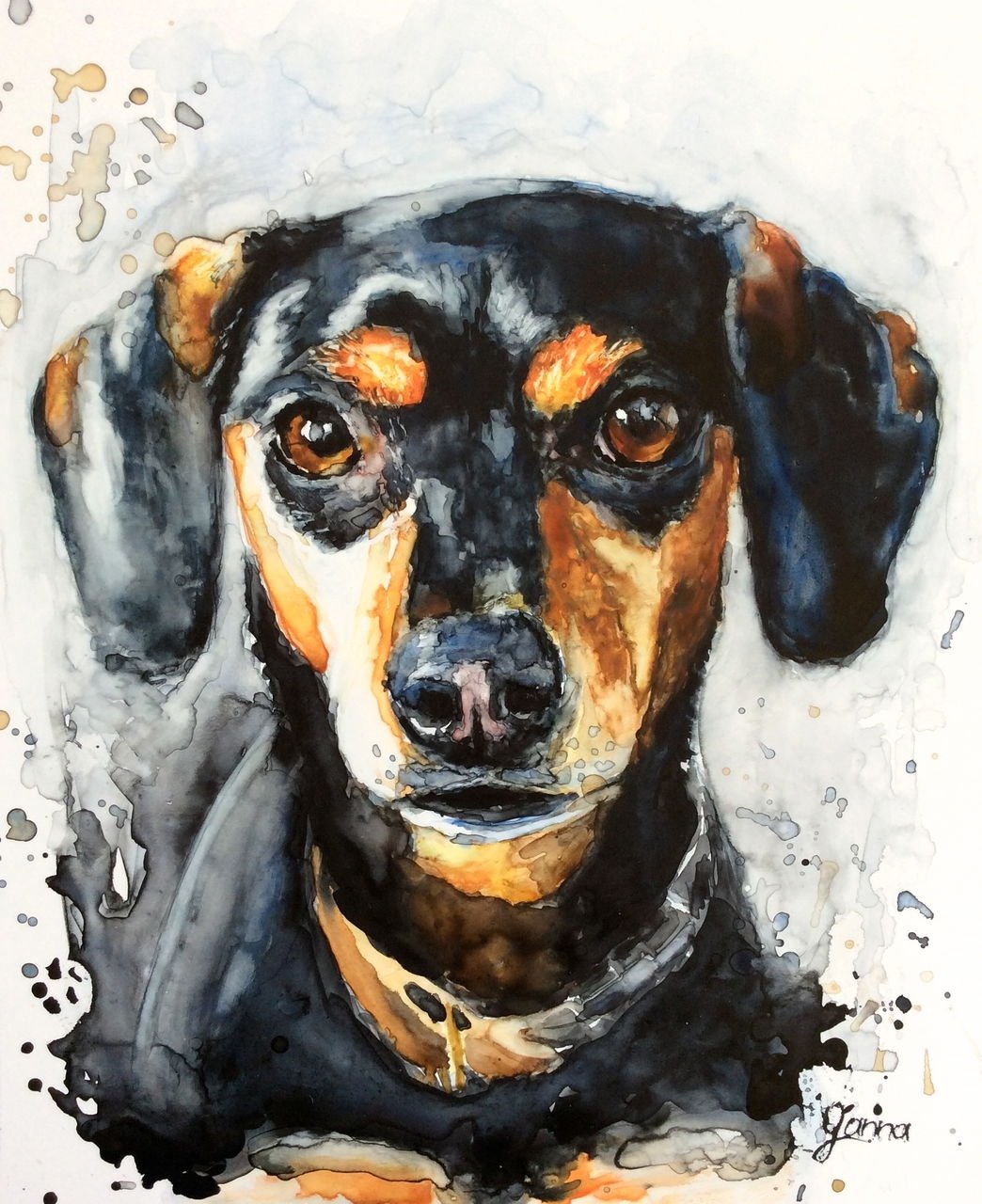 ![Доберман акварелью]()