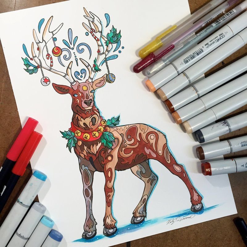 Олень скетч маркерами