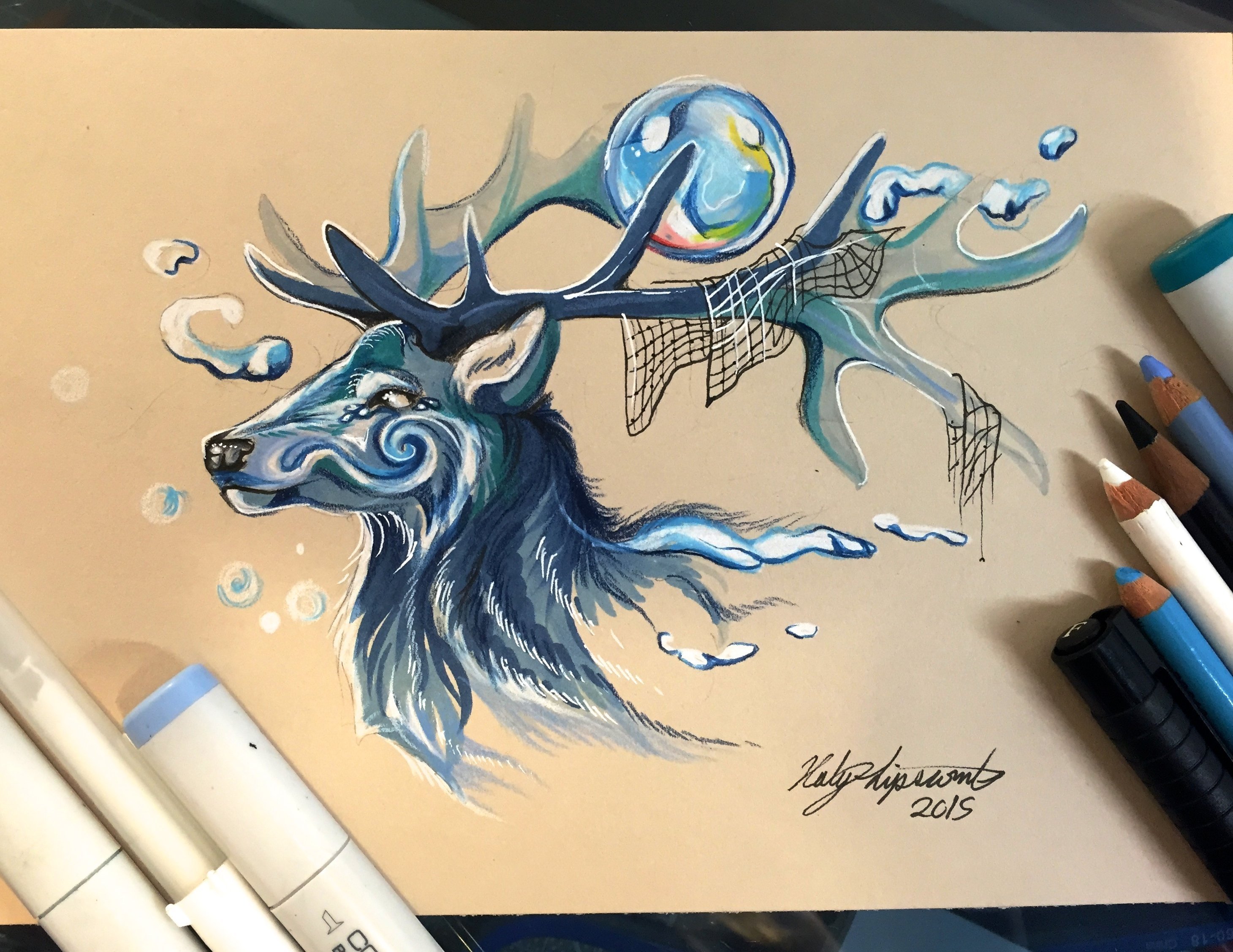 ![Олень фломастерами]()